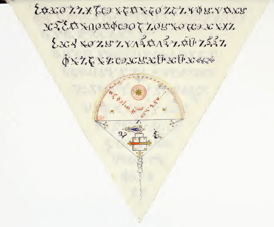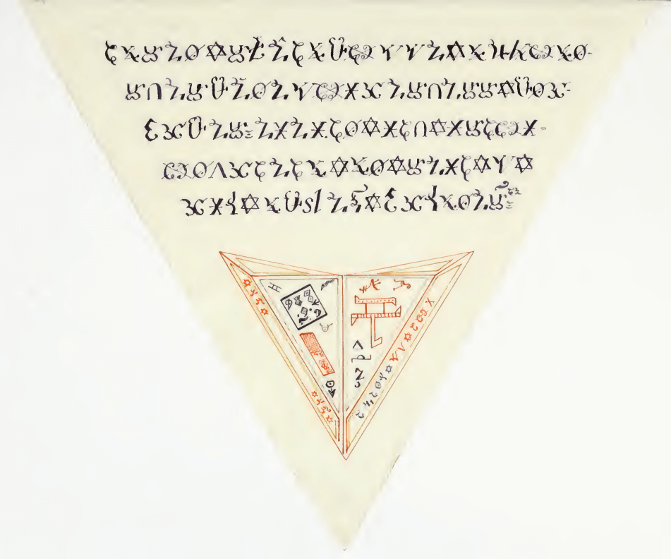 - Format: Triangular codex; red & gold inks; complete ritual with figures.