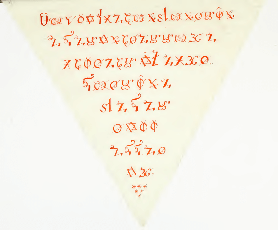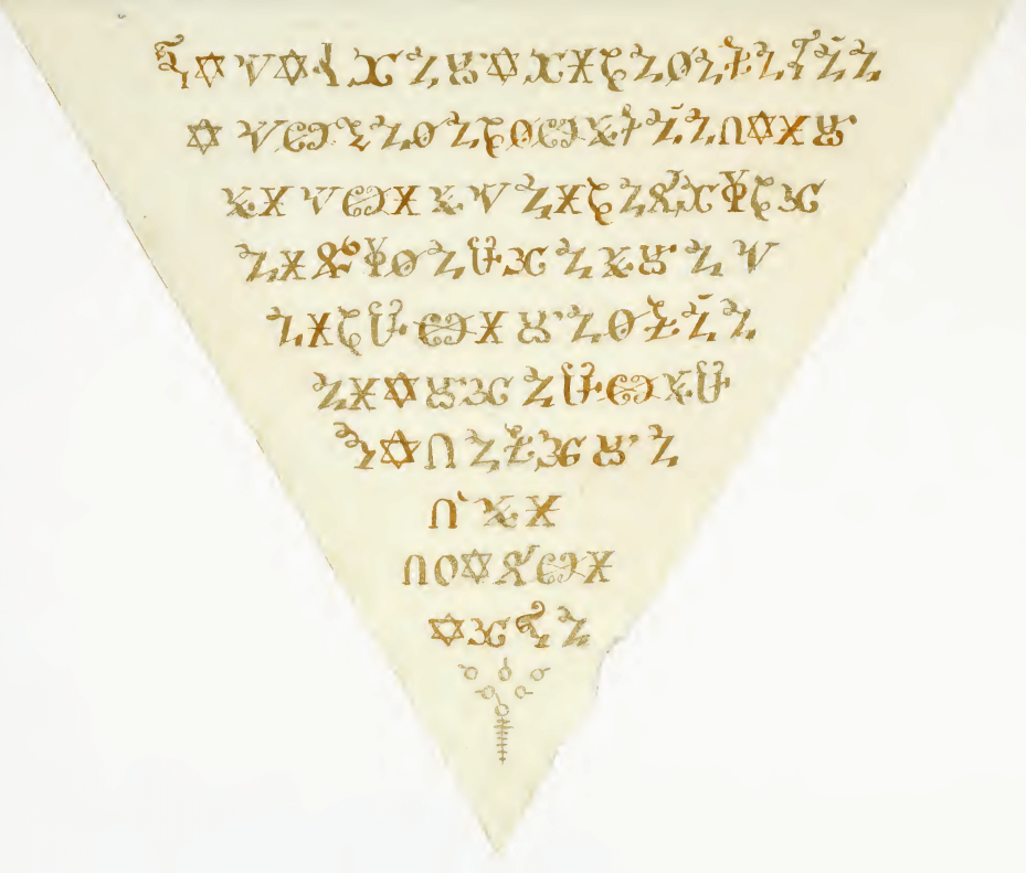 - Getty Research Institute, MS 209 — gold and red ink triangular codex.